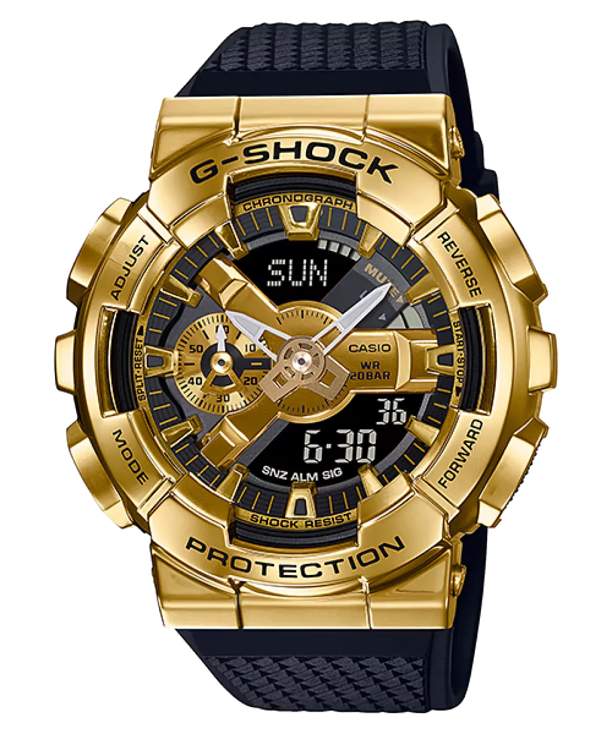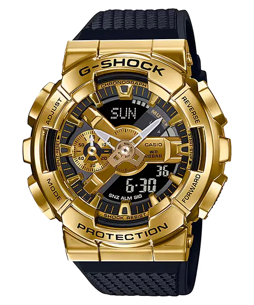 The Casio G-Shock GM-110G Men’s Watch combines rugged G-Shock durability with elevated, premium styling. Featuring a striking gold-tone stainless steel bezel, this model delivers a bold look while maintaining the shock-resistant performance the brand is known for.