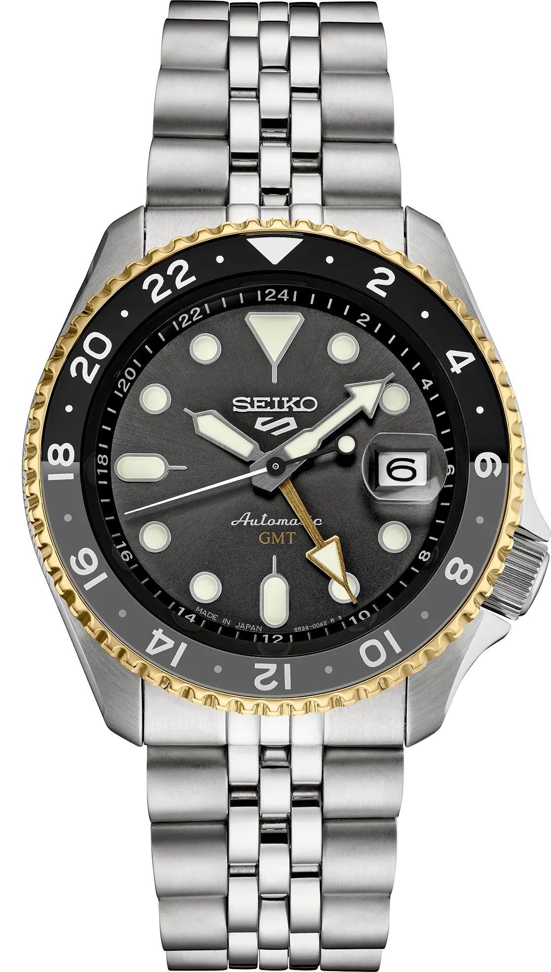 Comfortable, functional, and stylish, the Seiko 5 Sports GMT Automatic transitions seamlessly from casual wear to travel adventures. Its dependable construction and trusted Seiko craftsmanship make it a strong everyday companion.
