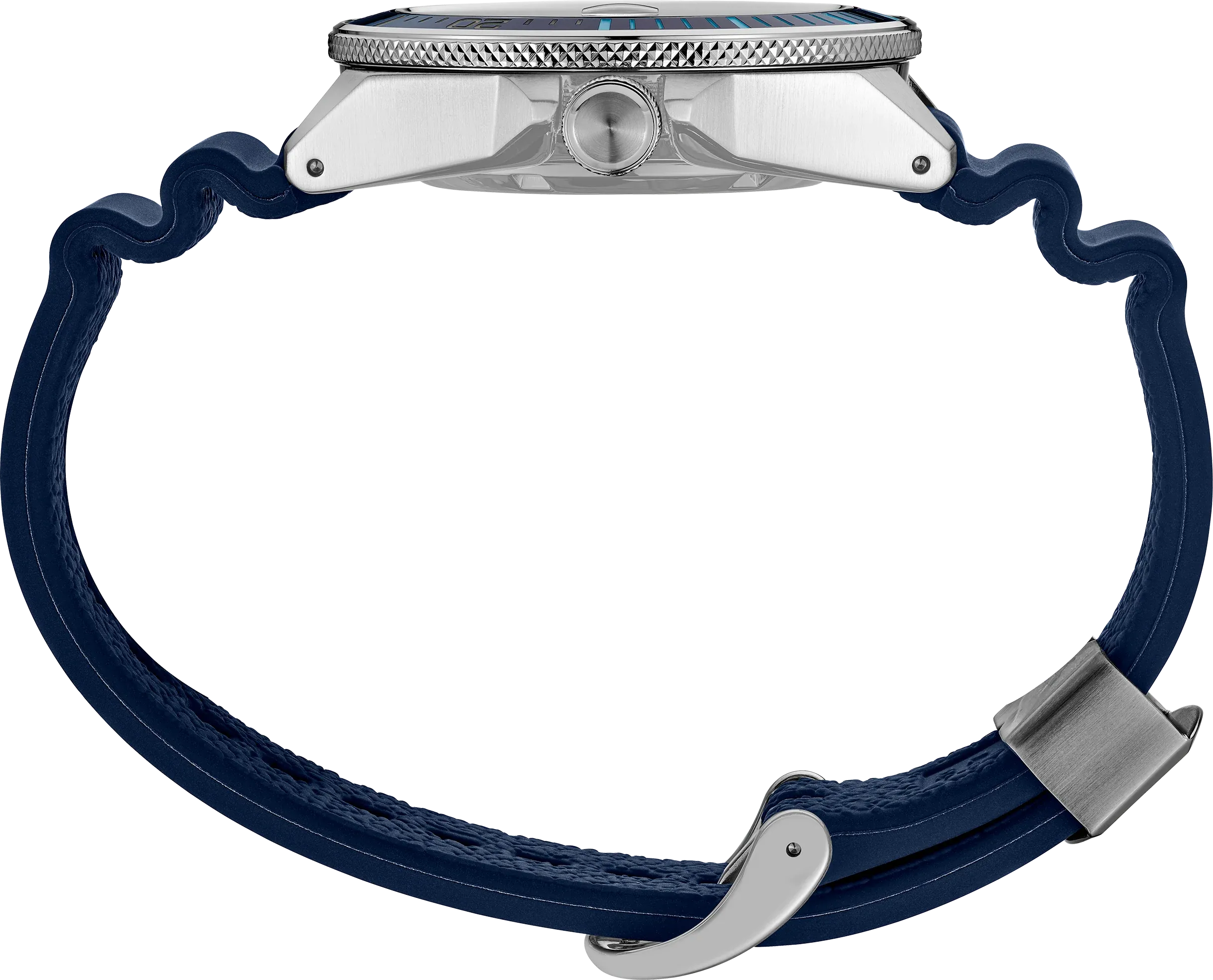 Powered by a Japanese automatic mechanical movement, the watch winds naturally with wrist motion, eliminating the need for a battery while delivering dependable timekeeping. The bold black dial ensures excellent legibility in low-light and underwater conditions, while a robust stainless steel case provides strength and long-term reliability. A scratch-resistant crystal protects the dial from daily wear.