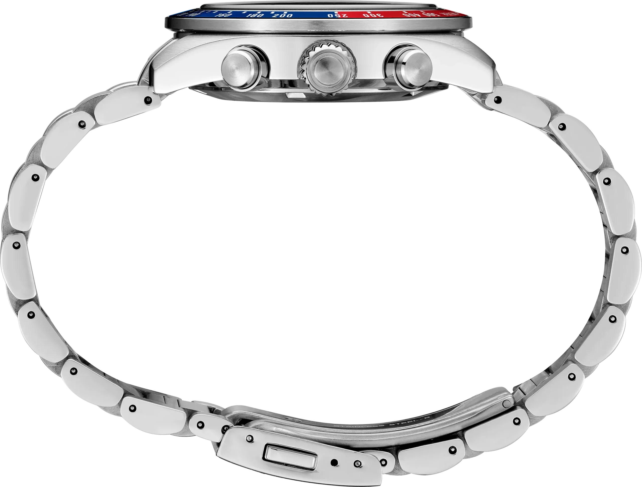 Powered by a solar-powered quartz movement, the watch converts light into energy, eliminating the need for battery replacement while delivering highly accurate timekeeping. The chronograph function allows precise measurement of elapsed time, making it ideal for sports, training, and outdoor activities. The bold blue dial enhances visibility and adds a refined, athletic look.