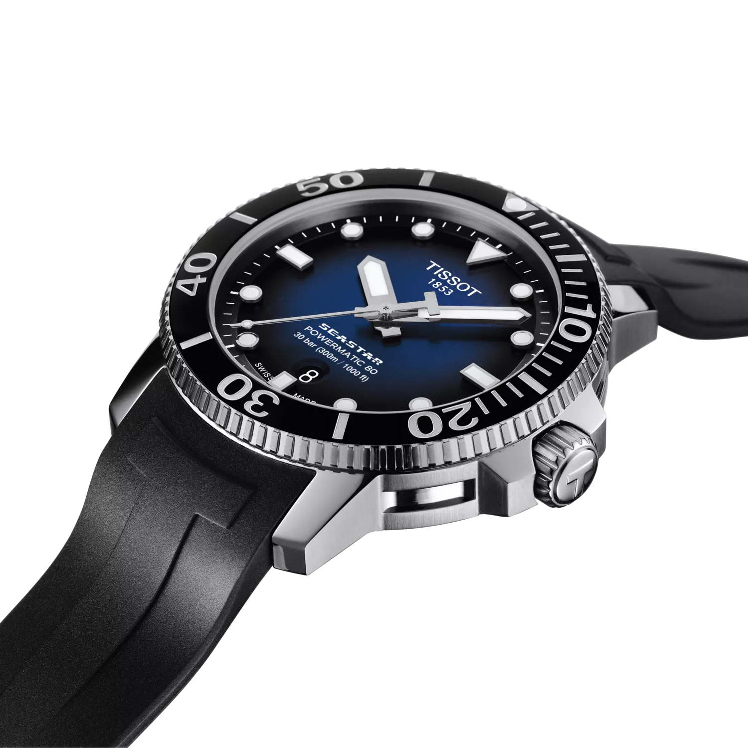 The Tissot Seastar 1000 Automatic Men’s Watch with Blue Dial is a high-performance Swiss dive watch engineered for reliability, precision, and extreme conditions. Designed for professional and recreational divers, this timepiece delivers robust construction with refined Swiss craftsmanship.