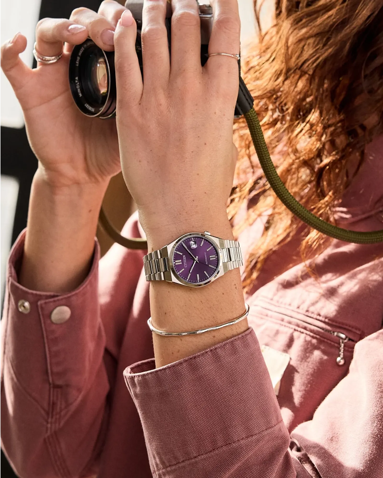The TSUYOSA Automatic, from the NJ020 series, brings ultramodern sports styling right to your wrist. Executed in a versatile 37mm footprint, the sophisticated design of the watch delivers a strong impression via a silver-tone stainless steel case and a seamlessly integrated, matching bracelet. Underneath an anti-reflective sapphire crystal, the sporty timepiece makes use of a sunray purple dial, with a 3 o’clock date window and complementing silver-tone details adding to its eye-catching configuration. Powered by an automatic movement with a 42-hour power reserve and offering up to 50 meters of water resistance, the refined timepiece is a daily-wear choice ready for work, play, and everythin